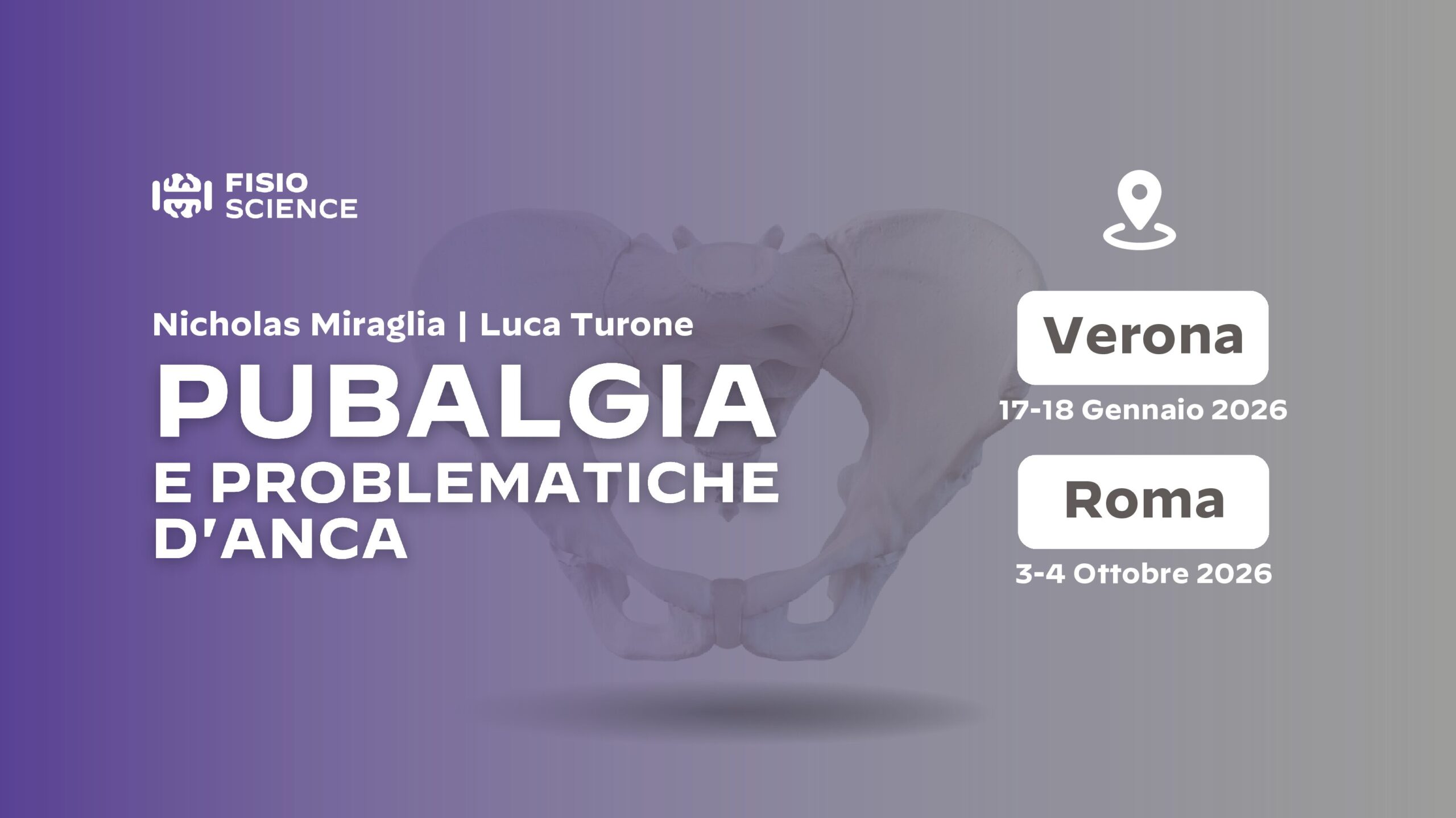 - 16:30 Valutazione clinica groin pain (adductor related GP, ileo-psoas related GP, inguinal related GP, pubic related GP) (parte teorica)